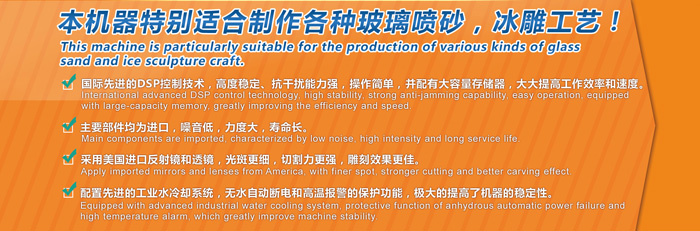 HR系列玻璃激光雕刻机是我厂根据玻璃行业需要而专门开发的多功能设备,专门适用于艺术玻璃行业。代替原始的电脑刻字机和立式卧式平板刻字机,喷砂膜直接贴到玻璃然后雕刻,减少很多转帖的麻烦,此机特点比刻字机速度快精度高,而且不会出现局部刻不透现象,高稳定的机械结构设计,数控运动平稳,该设备使用方便简单,是艺术玻璃加工(喷砂、凹蒙、蒙砂)行业首选设备。雕刻机自带雕刻,切割功能,可直接在玻璃上雕刻精美图案、人像,制作各种工艺玻璃。是一款性能价格比较高的雕刻机。